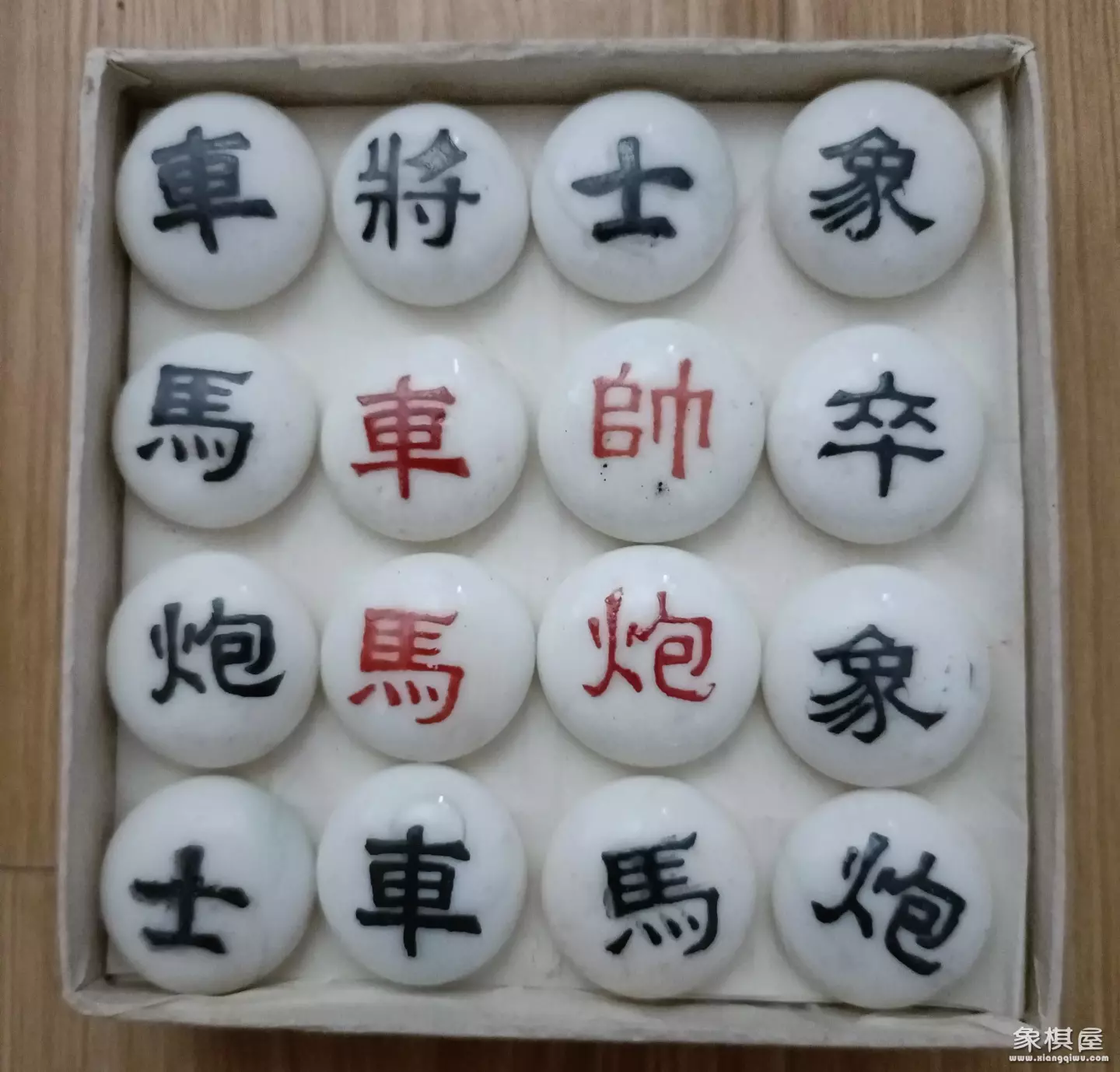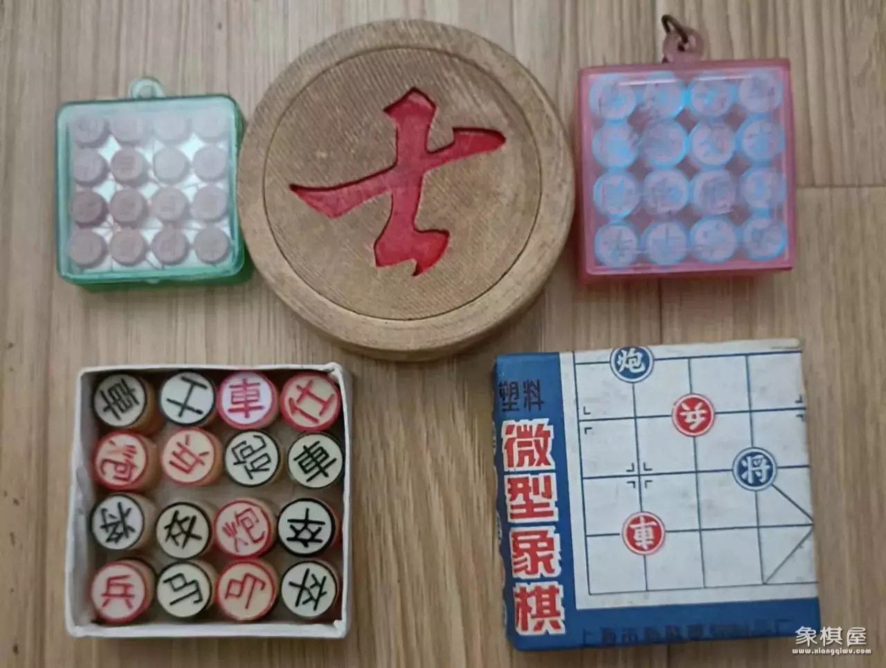 多年来,本人收藏的象棋,从材质上讲,有柏木的,红木的,实木的,犁木的,彩木的,胶木的,塑料的,水晶的,仿牛角的,玻璃的,有机玻璃的,磁性的,金属的,石头的,玉的,玛瑙的等。其形状大致分为鼓形和扁圆柱体二种。其厚度,从0.2到1公分左右不等。其直径规格,从0.4至8公分左右。计有30余种之多。其中一副连棋带盘,重达10余斤。