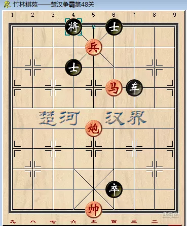 黑方还有将4平5的吃兵的选择,变化如下:将4平5,马四进六;将5平4(将5进1,则马六退五抽吃黑车胜),炮五平六;车7平4,马六进八双将胜。详见下动图。