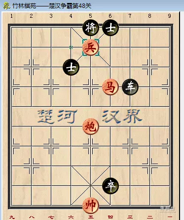 红方这个兵士支不得,将也坐不得,黑将只能出走旁侧。