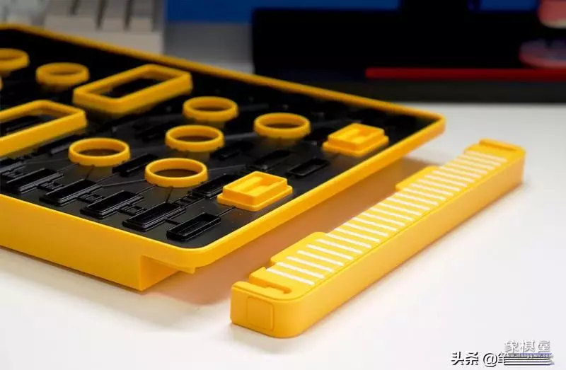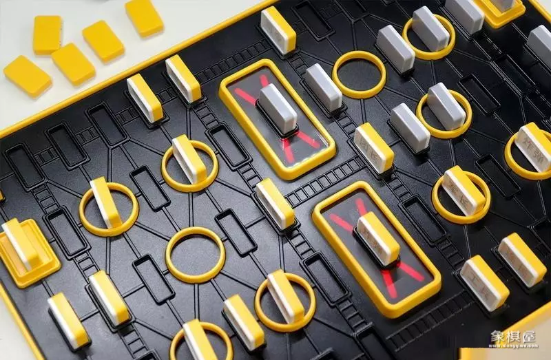 棋子已经不再是“远古胶木”,而是特制的、下方带有2个电极的塑料棋子,一方黄色、一方浅灰色,正面均为白底灰字,字迹清楚,保证久用不磨损。