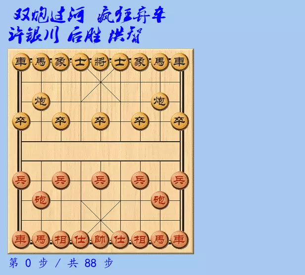 许洪对垒,激情四射,洪智执先手以中炮开阵,很快弃马谋势,要干,许银川执后手强硬双炮过河,中盘极其复杂之际,赫然送车于红车之口,震惊赛场,一举致胜,请看。