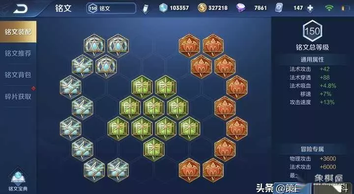 高渐离铭文是在法师传统狩猎88穿的基础上,将3贪婪替换为3梦魇;贪婪数量,可根据自身手感搭配3-5个。