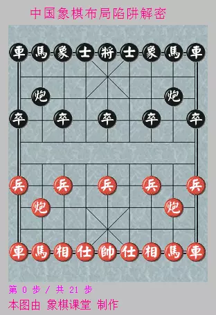 如图形势,红方先平七路炮,在次序上有了小小的改动,看似貌不惊人,实则具有一定的欺骗性。对此,黑方绝不能掉以轻心。