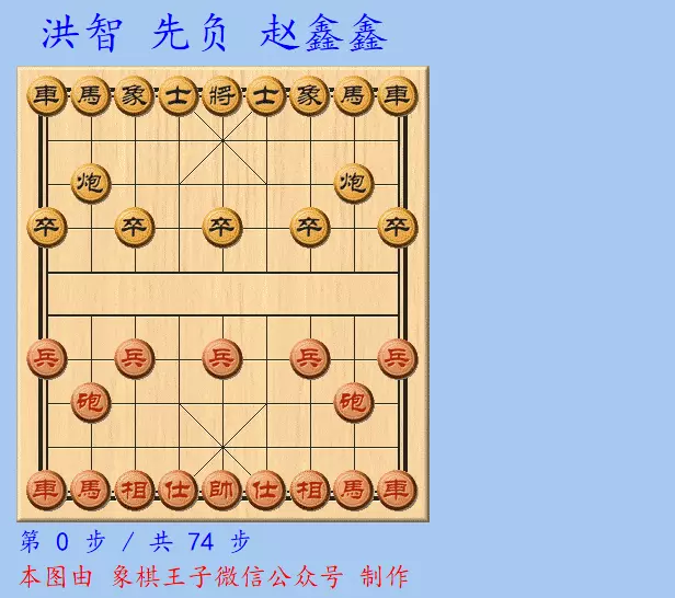 黑方得车,赵鑫鑫有车杀无车,74手车3卒士象全对马炮四兵仕相全,黑平车跟炮,要闪身再横车抓死马,洪智告败。