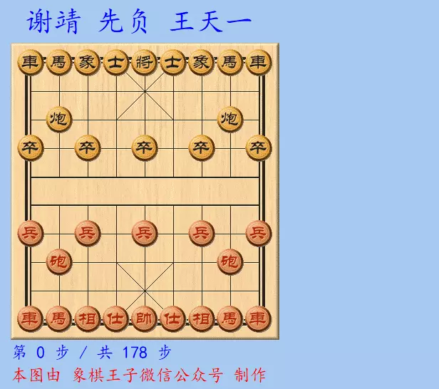 两人的慢棋、快棋均成和,加赛超快棋,谢靖执先摆出飞相阵,王天一强行架上中炮。