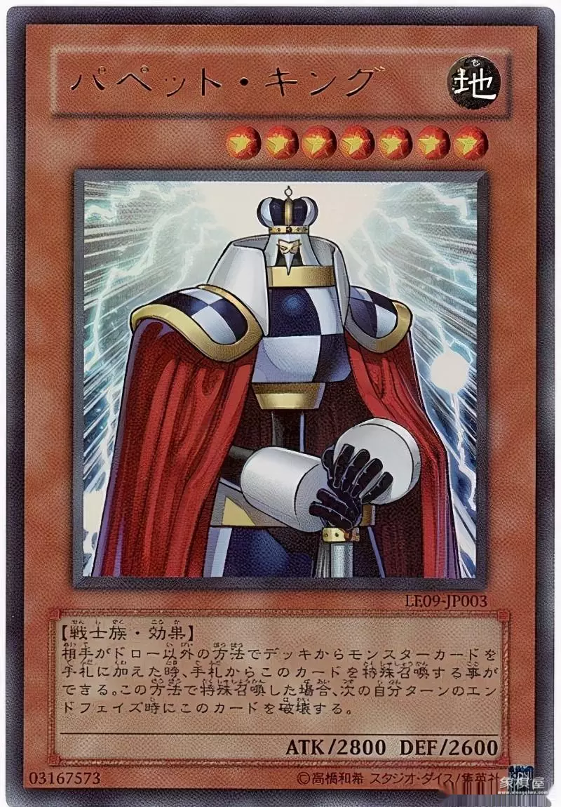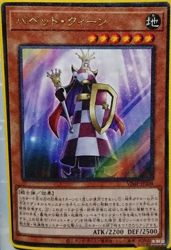 漫画游戏王r中卡片专家北森玲子使用的卡。漫画中的这张卡的效果是「这张卡可以将1只「パペット·クィーン」做祭品来召唤」,ocg化时被魔改。也是原型国际象棋的国王,真的很废?