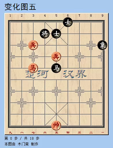 1. 兵七进一 将4退1 2. 兵七进一 将4平5 3. 帅五平六 马5退7