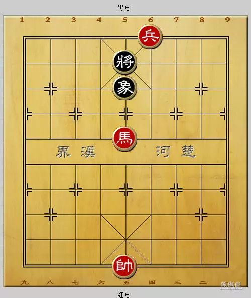 2. 挂角马象位兵式 :也就是用挂角马配合与将同侧的象位兵取象