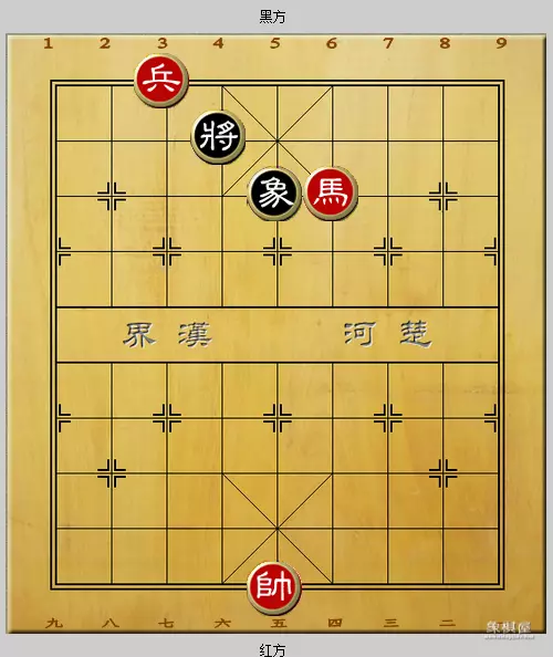 如果红马三进四再马四进6则可迅速形成挂角马象位兵式(棋友们可下来自行证),