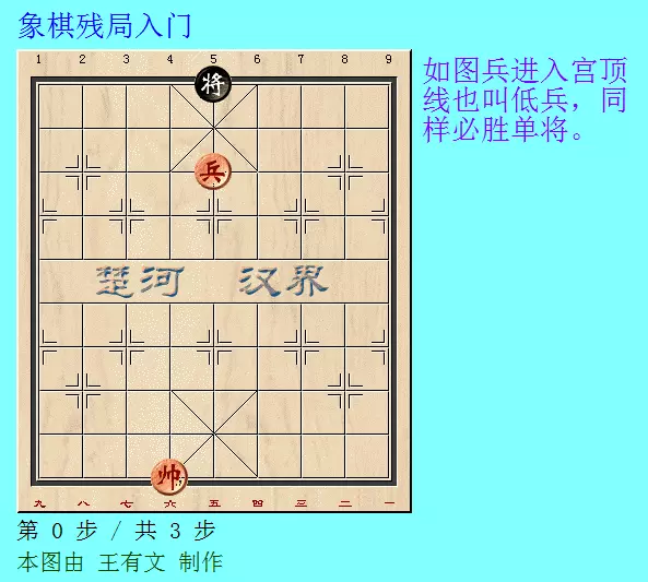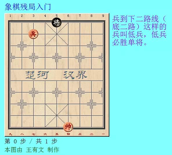 如图中的兵进入对方底线这样的兵叫底兵,底兵无法胜单将,和棋。