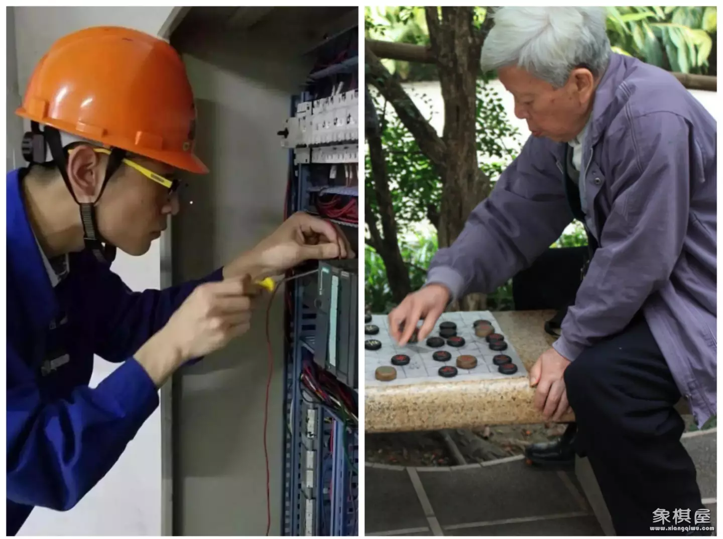 “让王师傅过来象一下就能解决!”“你这人怪(非常)象!”这两句是我们这边的方言,通常在解决现场技术难题时使用,“象”在第一句方言中的意思是“观察思考并找出解决方案”,在第二句里面是一个形容词,形容技术人员聪明、应变能力强,能够轻松化解难题!象棋和方言都是代代相传而来,二者定然有相通之处,所以,我认为象棋的“象”字的意思就是: 在变化中寻求解决之法!再结合技工现场寻求解决之法时的神情,我顿时明白了其他的释义缺少的是什么,缺的是人和棋在“象”中的灵魂相通!
