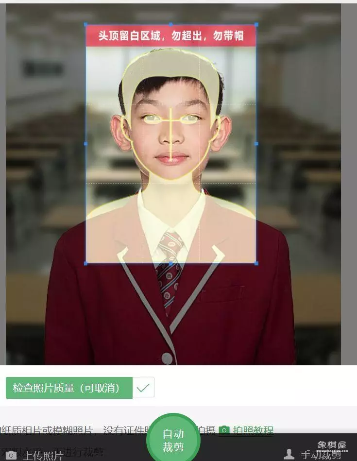 4、上传照片后,可以手动裁剪人像部分,也可以让软件自动帮助裁剪。