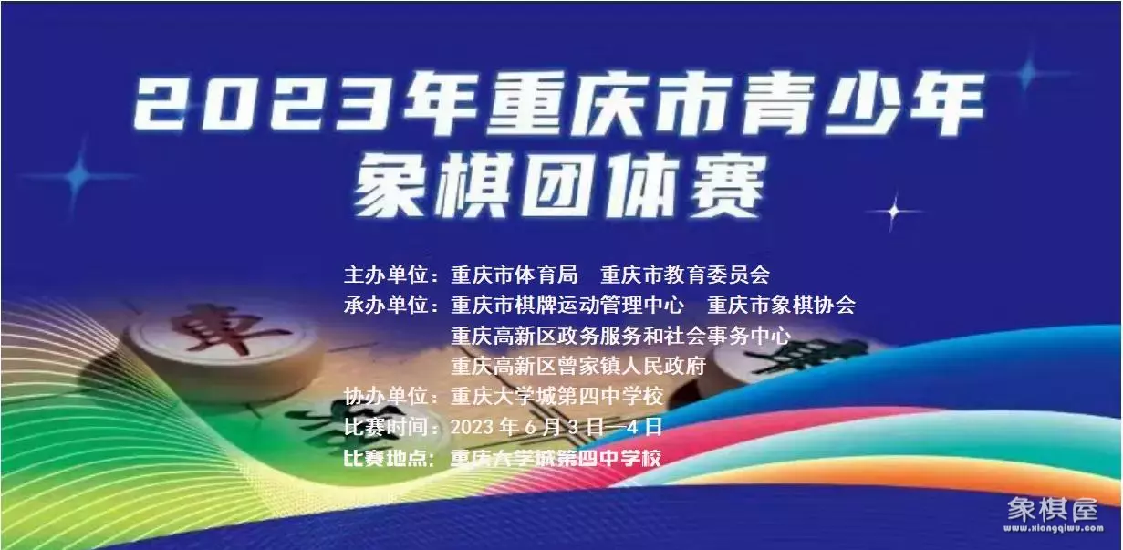 6月3日,2023年重庆市青少年象棋团体赛在重庆大学城第四中学校隆重开幕。本次比赛由重庆市体育局、重庆市教育委员会联合主办,重庆市棋牌运动管理中心、重庆市象棋协会、重庆高新区政务服务和社会事务中心、重庆市高新区曾家镇人民政府承办。