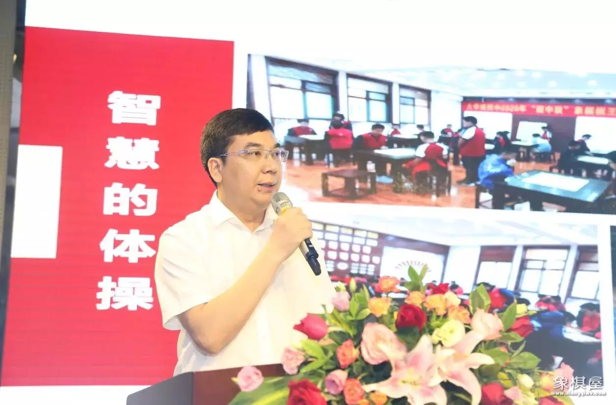学校校长冉建平对前来参会的领导和参赛选手致以最诚挚的欢迎。大四中作为国家级象棋特色学校,冉校长对学校“务本求真”的教育思想、“重真情、说真话、做真事、看真效”的办学理念、建设“一流初中 窗口示范”的办学愿景、“精准课堂、精美校园、精致生活、精彩人生”的幸福教育目标进行了详细阐述,并对学校的特色象棋课程、象棋赛事荣誉、象棋建设成就等基本情况作了简要介绍。