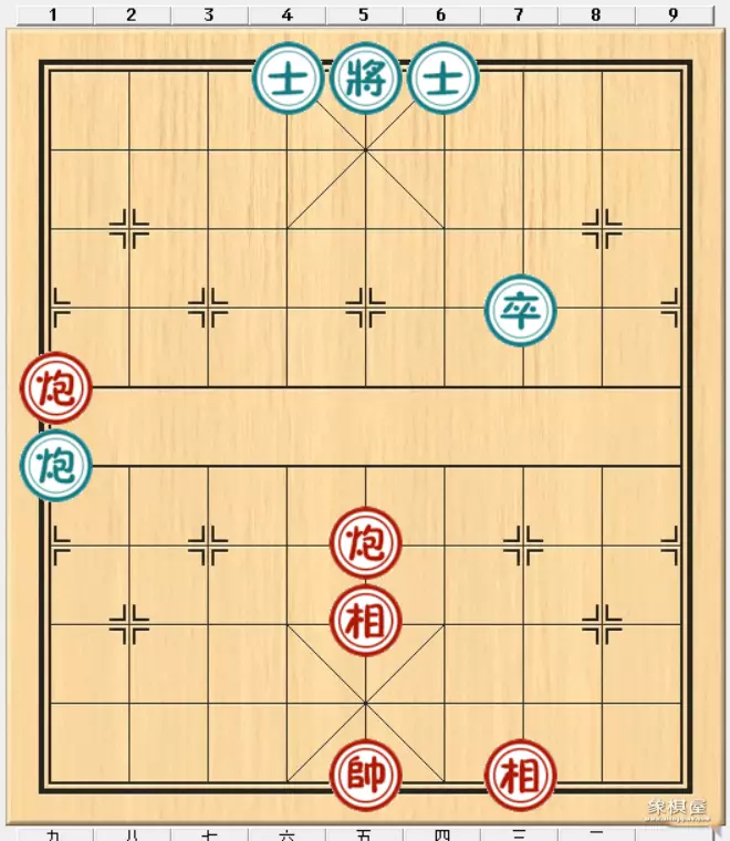 提示:双炮无士难胜单炮(黑单炮在肋道、将底处即可守和),但本局红方可用困毙杀法巧胜。