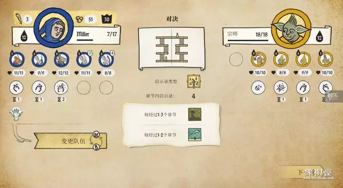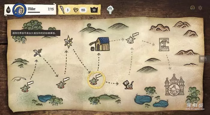 游戏中的大关卡做成了爬塔和roguelite的形式。玩家可以选取路线,随机获得奖励。每次墨法师的血量归零,需要消耗一根羽毛笔复活。如果3根羽毛笔用尽,这次旅程就结束了,玩家只能从头再来。