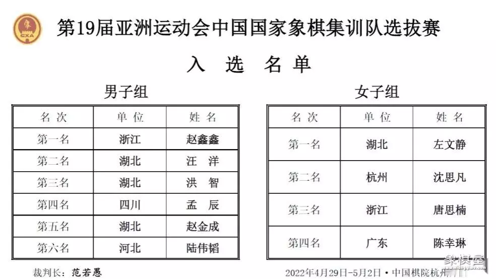 2022年“第19届亚洲运动会”象棋选拔赛