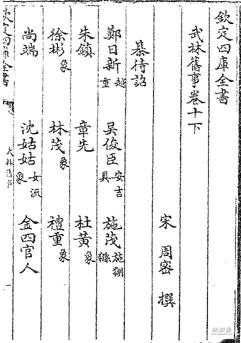 周密在书中所记录的棋待诏,并未明确指出是哪一朝人物,不过《武林旧事》〈干淳奉亲〉中,有提到小说人孙奇曾在干淳元年(1174)入宫见过孝宗,而周密所列的名册,小说人中亦有孙奇,故此名册应当是孝宗时的棋待诏。至于其中人物,郑日新号为“越童”,《绍兴府志》亦有记载:“郑日新,越州人,少善棋,世号越童。”可知郑日新出身于绍兴府,自幼即善弈棋。从“安吉吴”得知吴俊臣应出身于湖州安吉县。至于施茂其后所书“施猢狲”则应是施茂其貌如猴,所得到的绰号。另外,此名册中象棋待诏所占人数甚多,围棋有五人,象棋则有十人,不知是否因为孝宗较喜欢象棋的缘故。