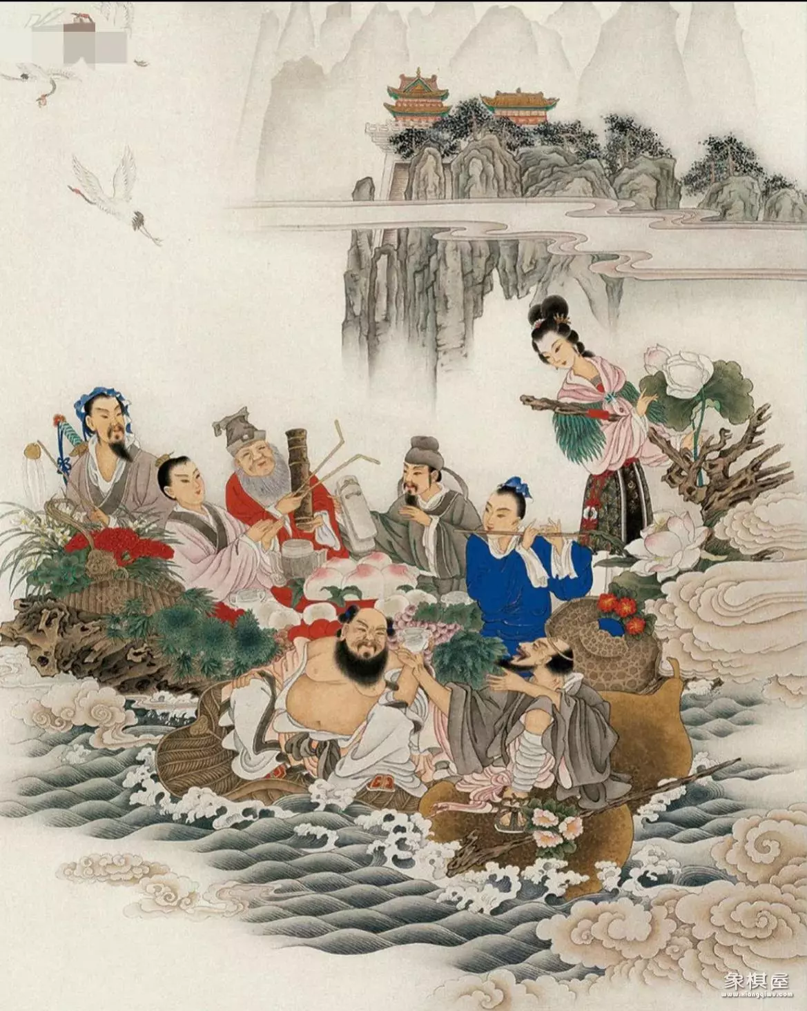 这时,吕洞宾想出了一个办法。他变成了大龟,供八仙坐在他的背上,然后自己化作了一艘船。八仙登上了吕洞宾变化而成的船,开始了过海的旅程。