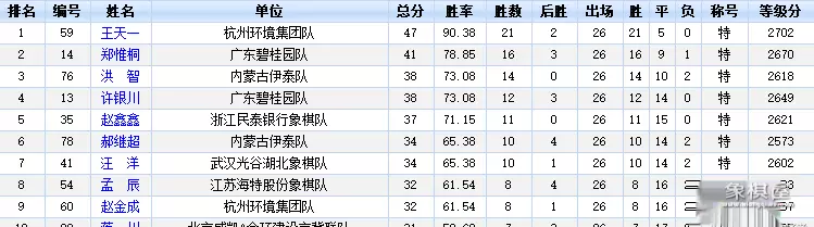 我们再回到目前正在举行的2017年全国象棋甲级联赛,这是全国最高水平的象棋团体赛。来看王天一在常规赛26轮结束后的战绩:
