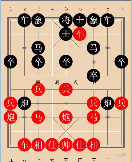 6.兵五进一,红有强烈攻势,伏炮五平三打车后,跳马五进六咬马兼打车,黑难应付。