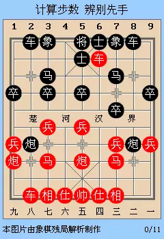 如图是一个从开局演变到前中局,有效步数在一定程度上反映了先手的状况。但到真正中局,步数已不起主要作用,亦不便计算,就不宜采用。
