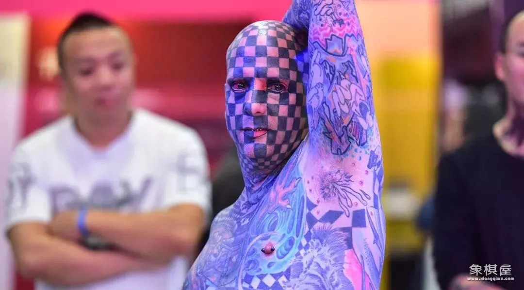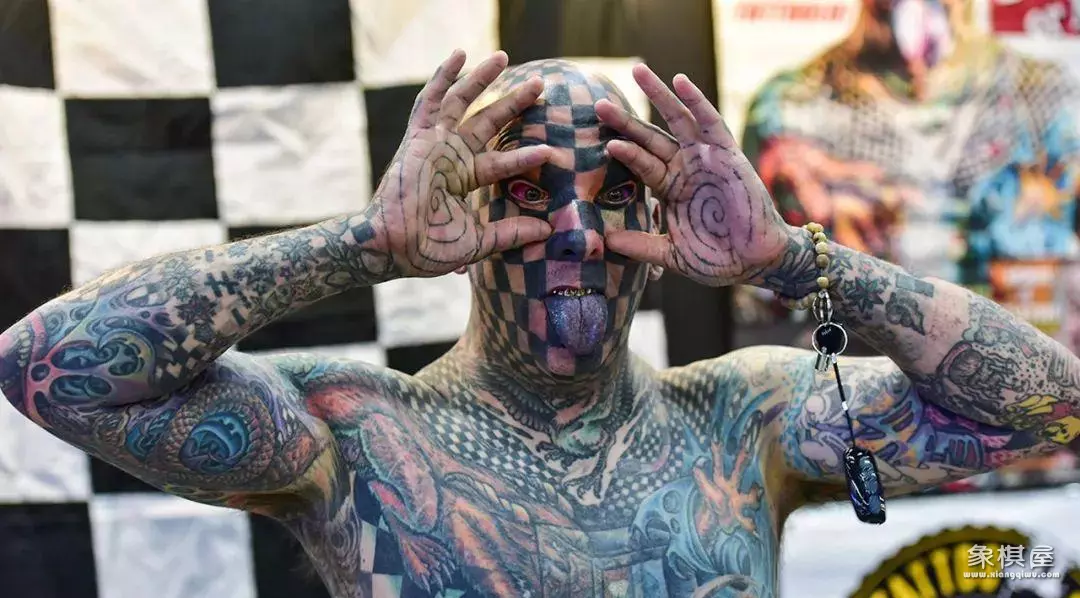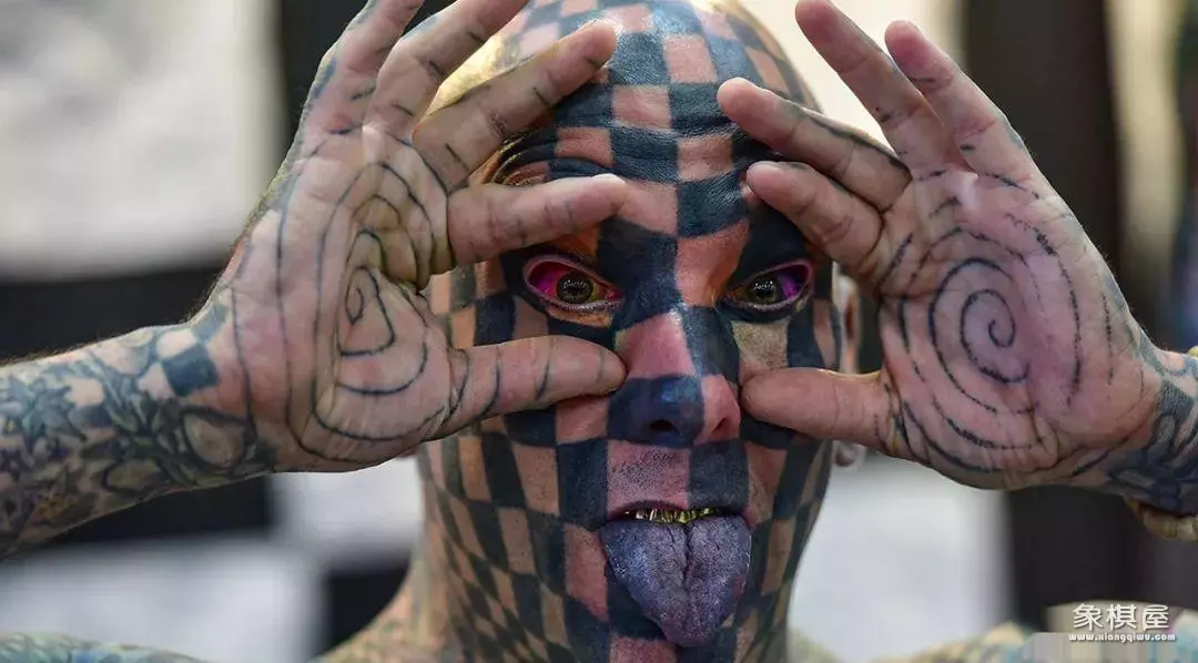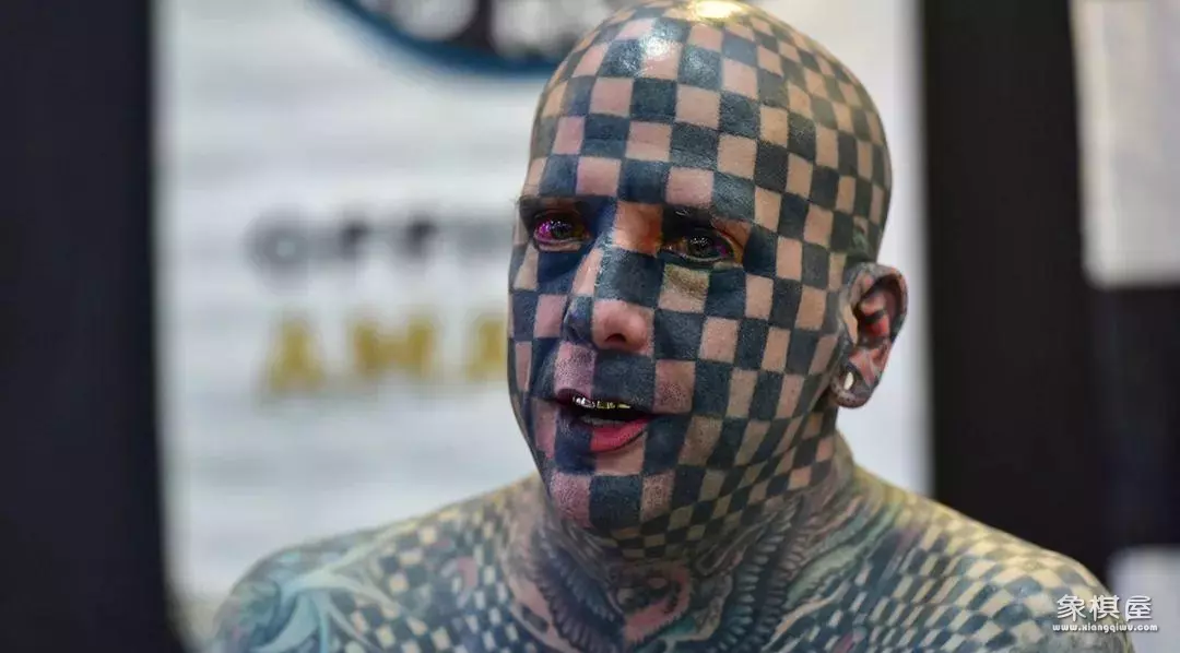 他将脸部纹成了棋盘的样式,同时为了追求纹的彻底,除了后背、胸膛、腹部、腿部这种明显的地方都纹了纹身之外,他还为自己的腋下等看不见的地方纹了纹身。