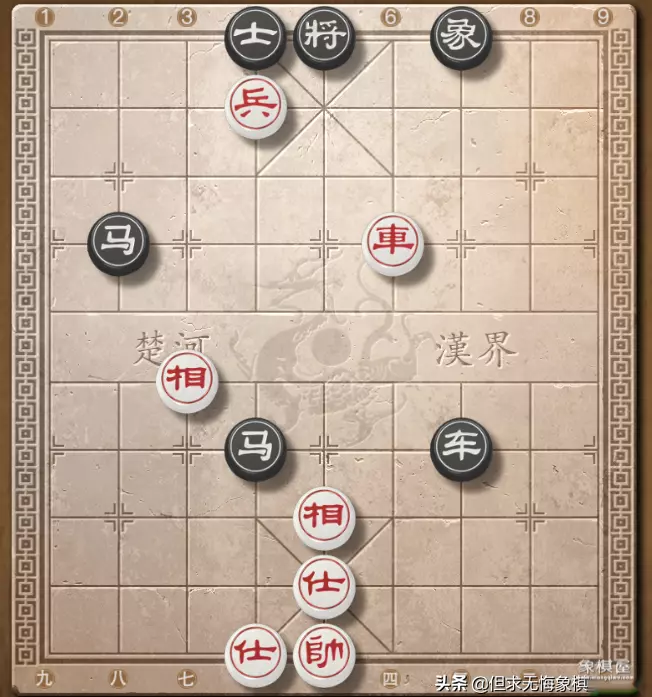 本图红方双兵已到达指定位置,但黑方双士的防守力量很强,还有黑车的底线绝杀威胁,红方该如何应对。