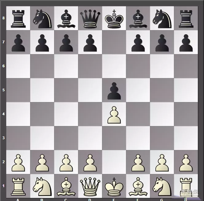 如图所示,白方走e4,黑方走e5,这是一种比较合理的走法,双方都为自己的一个象和后打开了线路。