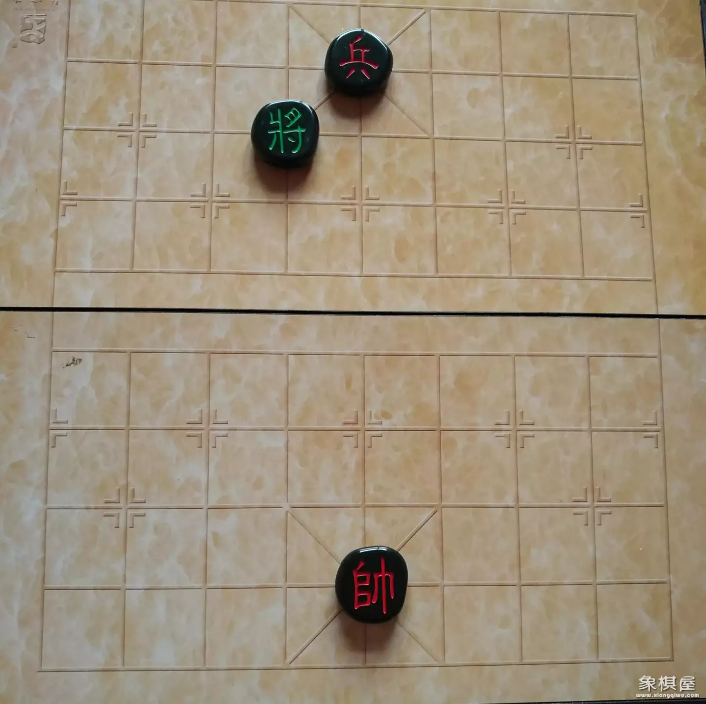 低兵胜单将。帅占中线,小兵坐“花心”,将对方困毙。