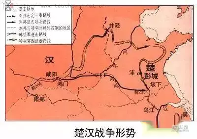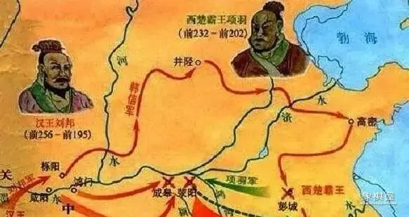 刘邦逃到了河南荥阳,占居荥阳,荥阳是历史上一个重要的关口兵家必争之地,有一夫当关、 万夫莫开的地理优势,如果荥阳一破那么军队就可以直接抵达洛阳,所以荥阳的地理位置至关重要,于是项羽又追到荥阳把刘邦打败,刘邦退守到成皋,项羽再次攻破成皋,刘邦退守到关中,这时候刘邦手下一员大将叫袁生献计,让刘邦进行钓鱼战的打法,拖住项羽,刘邦带兵攻打南阳,然后后方联系大将彭越攻击彭城,然而项羽带兵攻打南阳,彭城又起火,等项羽又赶去彭城,于是刘邦借机占领成皋。