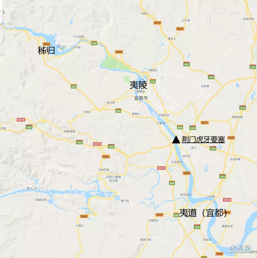 然而,我们看看实际的地图,却是反着的,夷陵在长江上游,而宜都在长江下游!(夷陵,古称彝陵,现在是湖北省宜昌市所辖的夷陵区。宜都,现湖北省宜昌市所辖的宜都市,三国时为夷道县。)