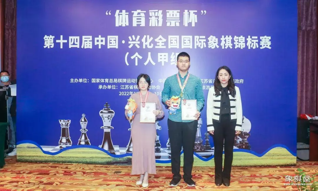 谭中怡(左)和戴常人(中)分别获得女子组和男子组冠军。中国国际象棋协会图片