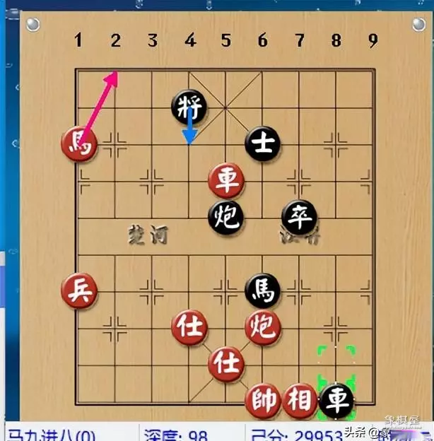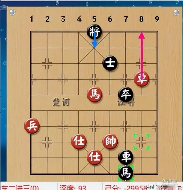 吕钦进攻十足,天下第一快马飞刀,拼杀到底,黑方冒险的挥车驰马分炮,家不设防,露出巨大的空门。