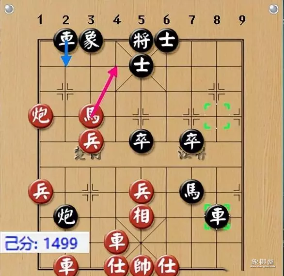 红45手若走马七进六奔马踢车,黑右路车炮不好逃,底线有难,红之优直逼1500分。