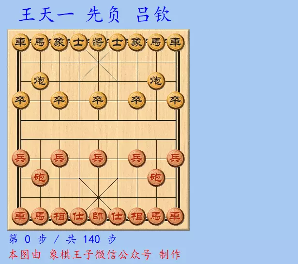 二人的慢棋,王天一弃子攻杀,吕钦夺子后,一度很有机会,后下到双车马炮三兵单缺相对双车炮4卒士象全。