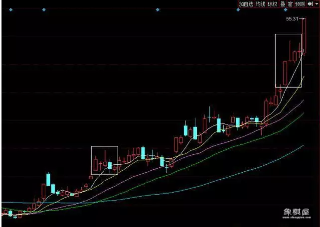 2、出现在拉升阶段的初期,是主力测试盘面筹码的稳定度和上阻力,暗中发出攻击指令。