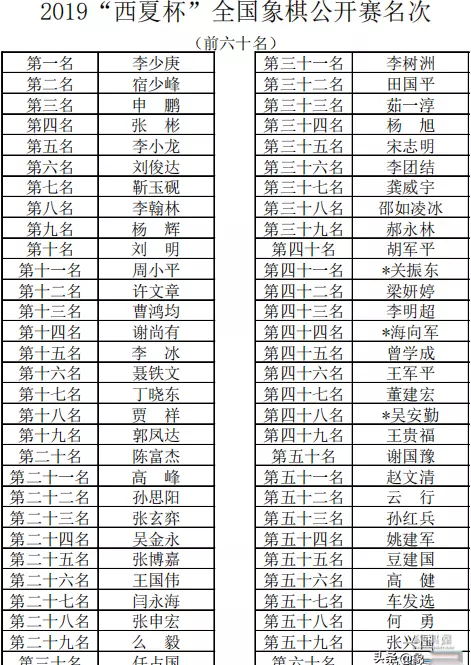宁夏象棋刘明全国排名