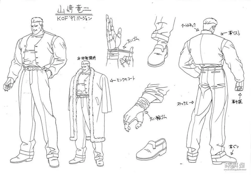 在《拳皇97》人物征集的评选中,山崎龙二居然是名列榜首。正好八杰集这边缺一个人,看他的形象和气质还蛮符合的。