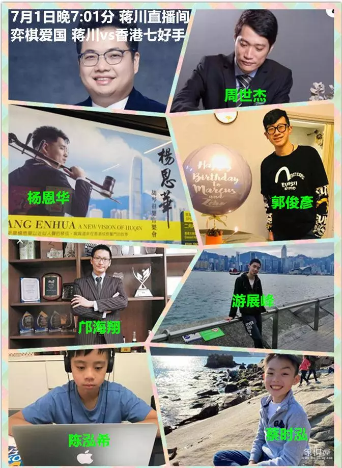 蒋川特大遂提出此次香港回归祖国怀抱二十五周年之际,7.1晚7点1分,与7位香港象棋棋手交流,弈棋爱国,共谱象棋美好华章。