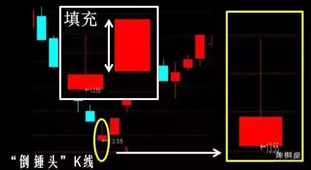 倒锤头k线倒锤头k线,上影线很长,实体很小,位于k线的下端。经常出现在下降跌势之后,是行情可能见底的信号。