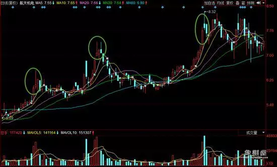 实例:航天机电股价在上涨过程中,多次出现仙人指路形态,一路上涨,主力机构多次使用此仙人指路形态试盘。
