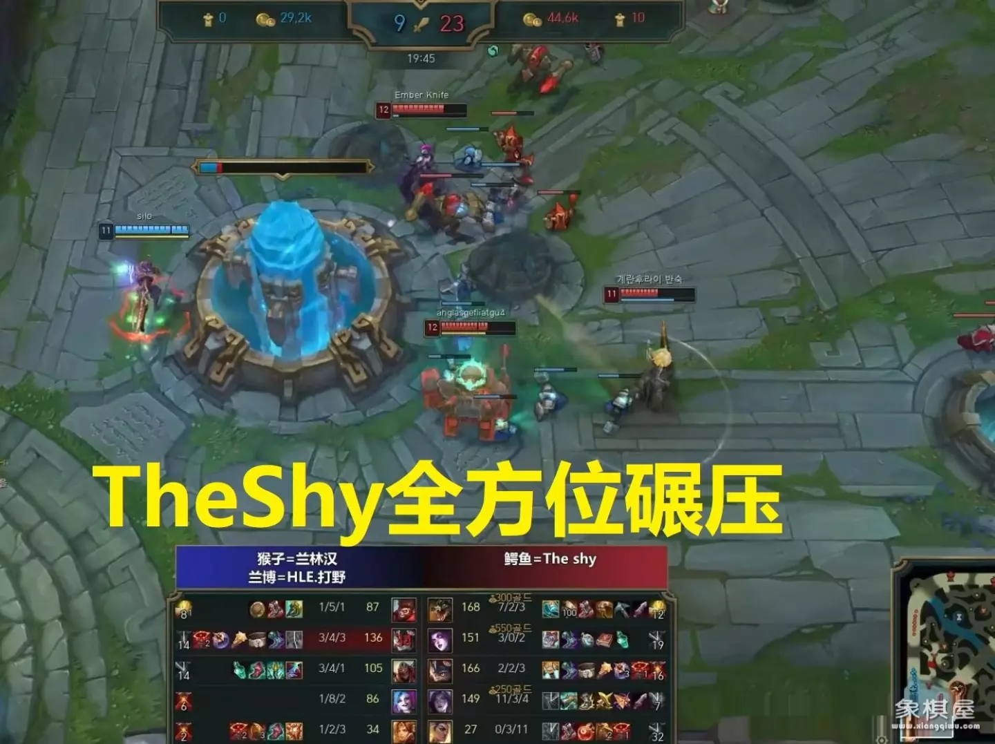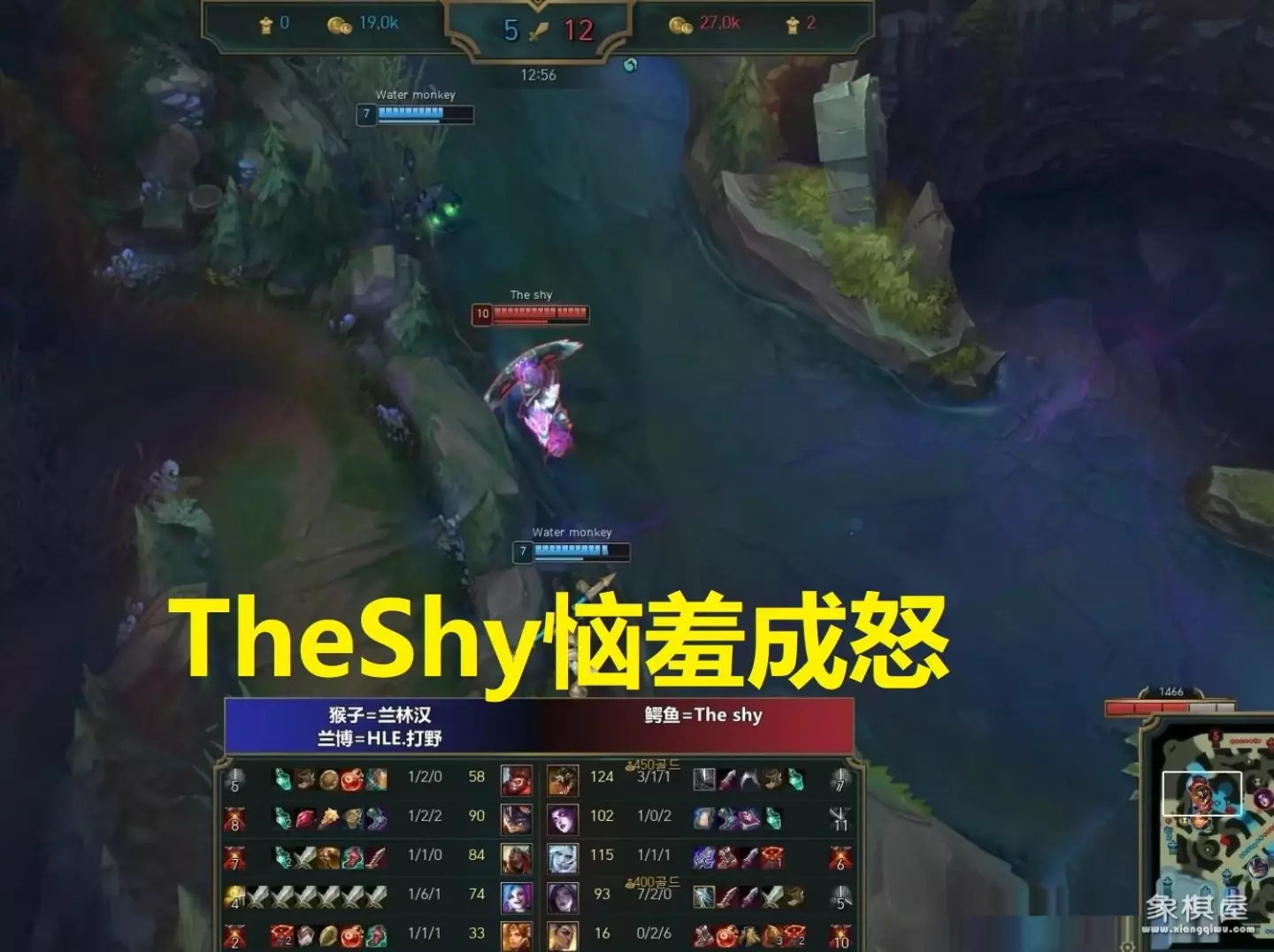 兰林汉不愧是国服第一猴子,实力果然名副其实,在单杀theshy后直接对本局队员说:“我来接管比赛!”但现实很打脸,兰林汉猴子被theshy鳄鱼给打爆了。虽然theshy在1级时被对面猴子给单杀了,但兵线却是向着theshy方向推进的,于是theshy使用传送上线后便开始控兵线,然后叫队员打野莫甘娜前来帮忙,攒好怒气又用基础技能连招消耗掉对面猴子一半的血量,迫使对面猴子回家补给状态,结果theshy鳄鱼领先了不小的经验和经济,到后面追着对面猴子杀。