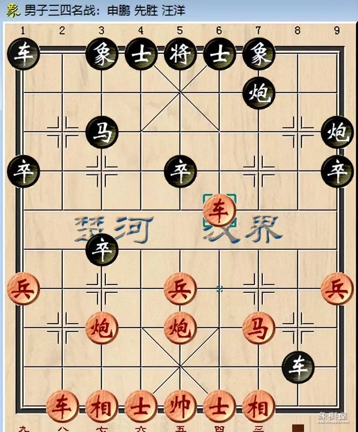 汪洋也不含糊,黑方冲卒制马,左路平炮兑车,复高车保马,退下2路炮,游动左侧,驱打红棋右车。