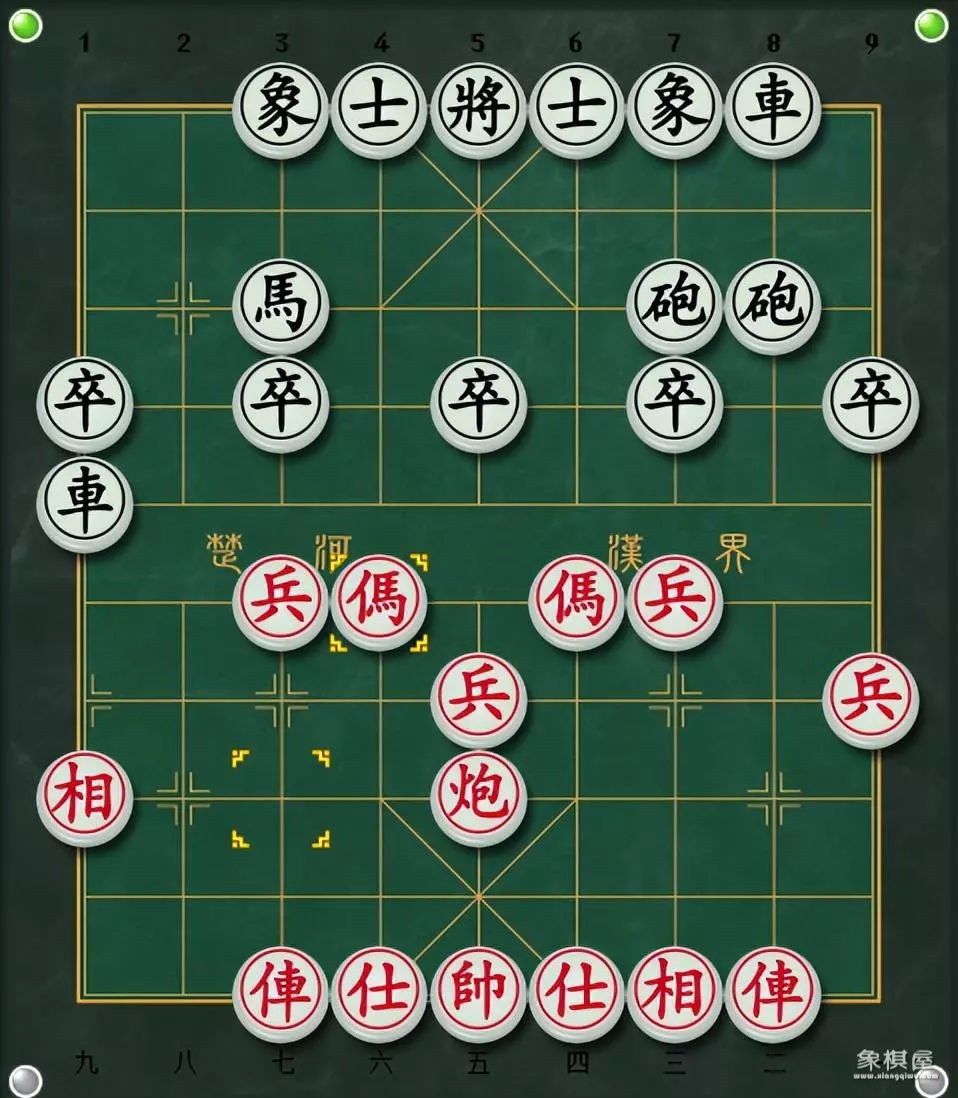 1. 炮二平五 马8进7 2. 马二进三 马2进3
