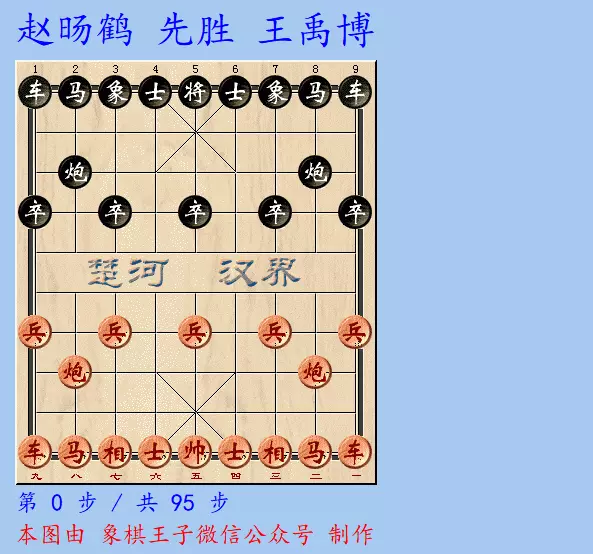 红棋点车底线,炮在中路,双马扑袭,终于95手跃马挂角,弃马成绝,王禹博落败,前四轮还亏一分,形势危险。
