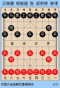 b组中郝继超王琳娜配合默契,36回合多子多兵战胜谢靖梁妍婷,余者两盘皆以和棋告终。