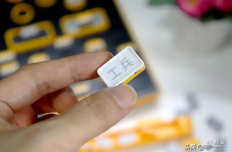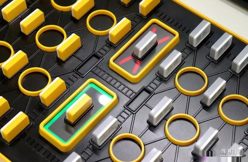 棋子已经不再是“远古胶木”,而是特制的、下方带有2个电极的塑料棋子,一方黄色、一方浅灰色,正面均为白底灰字,字迹清楚,保证久用不磨损。