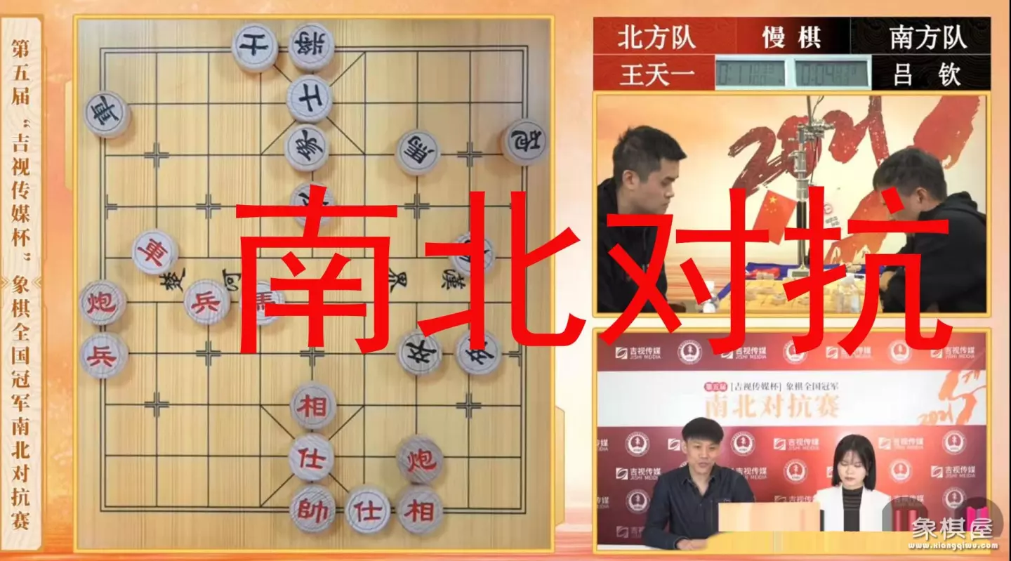 南北对抗赛9月16日至19日在吉林举行。长江为界,分为南北两队,每队4名全国冠军棋手。竞赛规程,东道主吉林派一名全国冠军棋手代表北方队参赛。在2020年全国象棋个人锦标赛上,吉林棋手王廓勇夺男子组冠军,成为我国的第21位象棋棋王。王廓代表北方队出战本次南北对抗赛,北方队的其他3位棋手是王天一、蒋川和洪智。南方队的4位参赛棋手是赵鑫鑫、吕钦、谢靖和徐超。汪洋,许银川,郑惟桐,缺席本次大赛,南方队实力,大打折扣。方大比分!