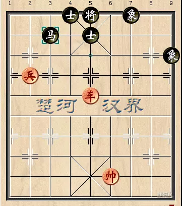 来看本局,现盘上红车兵处于卒林位置,黑马在中象处,占位相当良好,红兵一时间不能靠近,车也难以护卫,怎么办,且见招式。